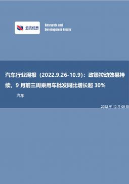 [汽车零部件]2022-10-09-信达证券-汽车行业周报:政策拉动效果持续,9月前三周乘用车批发同比增长超30%-21页(银创产业通www.chanyetong.net)