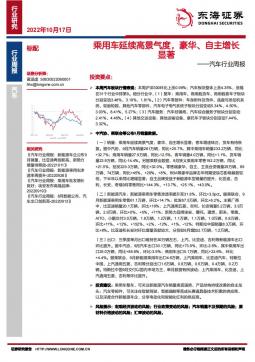 [汽车零部件]2022-10-18-东海证券-汽车行业周报:乘用车延续高景气度,豪华、自主增长显著-18页(银创产业通www.chanyetong.net)(银创产业通www.chanyetong.net)
