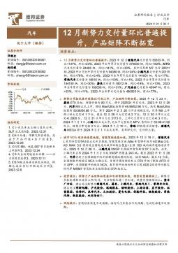 [汽车整车]2024-01-03-德邦证券-汽车:12月新势力交付量环比普遍提升,产品矩阵不断拓宽-2页(银创产业通www.chanyetong.net)(银创产业通www.chanyetong.net)