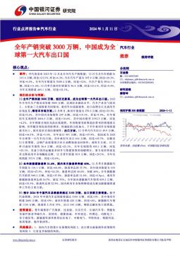 [汽车整车]2024-01-14-中国银河-汽车行业行业点评报告:全年产销突破3000万辆,中国成为全球第一大汽车出口国-2页(银创产业通www.chanyetong.net)(银创产业通www.chanyetong.net)