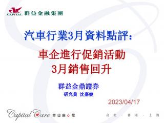 [汽车零部件]2023-04-17-群益证券-汽车行业3月数据点评:车企进行促销活动3月销售回升-6页(银创产业通www.chanyetong.net)(银创产业通www.chanyetong.net)