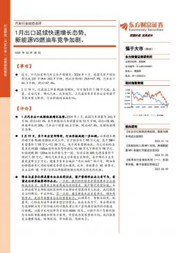 [新能源汽车]2024-02-20-东方财富证券-汽车行业动态点评:1月出口延续快速增长态势,新能源VS燃油车竞争加剧。-3页(银创产业通www.chanyetong.net)(银创产业通www.chanyetong.net)