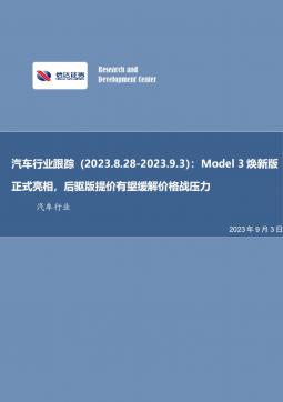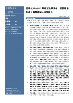 [汽车整车]2023-09-01-信达证券-汽车行业事项点评:特斯拉Model 3焕新版全系发布,后驱版增配提价有望缓解价格战压力-3页(银创产业通www.chanyetong.net)