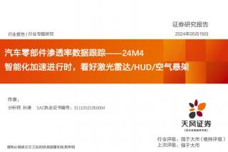 [汽车零部件]2024-05-20-天风证券-汽车零部件渗透率数据跟踪:24M4智能化加速进行时,看好激光雷达-HUD-空气悬架-43页(银创产业通www.chanyetong.net)(银创产业通www.chanyetong.net)