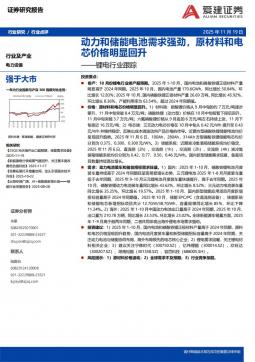 [电池]2025-11-19-爱建证券-锂电行业跟踪:动力和储能电池需求强劲,原材料和电芯价格明显回升-9页(银创产业通www.chanyetong.net)