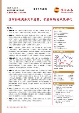 [车联网]2023-08-02-西南证券-汽车行业周报:国家持续提振汽车消费,智能网联迎政策催化-18页(银创产业通www.chanyetong.net)(银创产业通www.chanyetong.net)