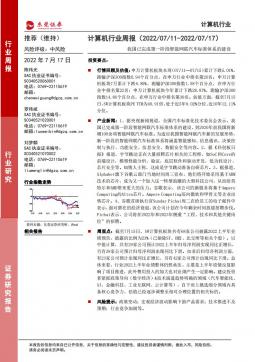 [车联网]2022-07-18-东莞证券-计算机行业周报:我国已完成第一阶段智能网联汽车标准体系的建设-8页(银创产业通www.chanyetong.net)(银创产业通www.chanyetong.net)