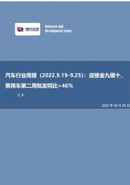 [汽车零部件]2022-09-26-信达证券-汽车行业周报:迎接金九银十,乘用车第二周批发同比+46%-20页(银创产业通www.chanyetong.net)