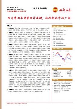 [汽车零部件]2022-09-26-西南证券-汽车行业周报:9月乘用车销量预计高增,域控制器市场广阔-17页(银创产业通www.chanyetong.net)(银创产业通www.chanyetong.net)
