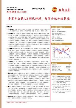 [汽车整车]2023-12-25-西南证券-汽车行业周报:多家车企获L3测试牌照,智驾升级加速推进-18页(银创产业通www.chanyetong.net)(银创产业通www.chanyetong.net)