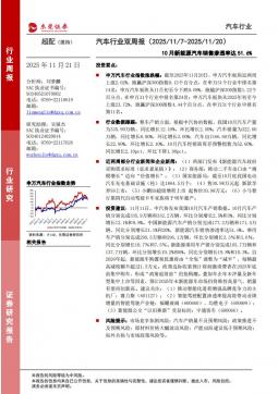 [汽车零部件]2025-11-21-申港证券-汽车行业研究周报:10月新能源汽车表现亮眼-10页(银创产业通www.chanyetong.net)