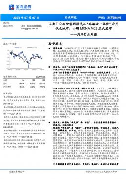 [无人驾驶]2024-07-07-国海证券-汽车行业周报:五部门公布智能网联汽车“车路云一体化”应用试点城市,小鹏MONA M03正式发布-18页(银创产业通www.chanyetong.net)
