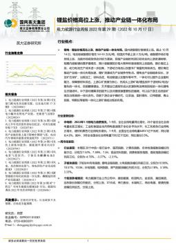 [锂电]2022-10-19-英大证券-电力能源行业周报2022年第29期:锂盐价格高位上涨,推动产业链一体化布局-29页(银创产业通www.chanyetong.net)(银创产业通www.chanyetong.net)