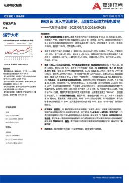 [汽车零部件]2025-09-30-爱建证券-汽车行业周报:理想i6切入主流市场,品牌焕新助力纯电破局-4页(银创产业通www.chanyetong.net)
