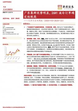 [汽车零部件]2025-11-28-华源证券-汽车行业双周报:广东集群优势明显,26H1液冷订单确定性较高-9页(银创产业通www.chanyetong.net)