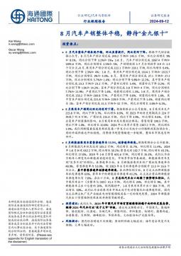[汽车零部件]2024-09-12-海通国际-汽车与零配件行业跟踪报告:8月汽车产销整体平稳,静待“金九银十”-9页(银创产业通www.chanyetong.net)(银创产业通www.chanyetong.net)
