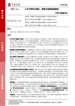 [汽车零部件]2024-09-11-东莞证券-汽车行业跟踪点评:8月产销环比增长,智能化进程持续推进-2页(银创产业通www.chanyetong.net)(银创产业通www.chanyetong.net)