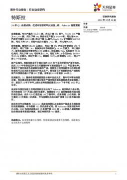 [无人驾驶]2024-04-28-天风证券-汽车行业:特斯拉24年Q1业绩点评:低成本车型和平台加速上线,Robotaxi有望更新-2页(银创产业通www.chanyetong.net)(银创产业通www.chanyetong.net)