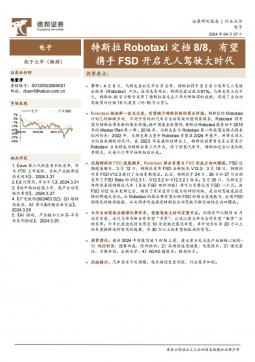 [无人驾驶]2024-04-08-德邦证券-电子:特斯拉Robotaxi定档8-8,有望携手FSD开启无人驾驶大时代-2页(银创产业通www.chanyetong.net)(银创产业通www.chanyetong.net)