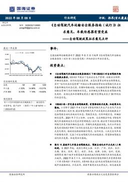 [智能驾驶]2022-08-10-国海证券-自动驾驶政策征求意见点评:《自动驾驶汽车运输安全服务指南(试行)》征求意见,车载传感器有望受益-4页(银创产业通www.chanyetong.net)(银创产业通www.chanyetong.net)