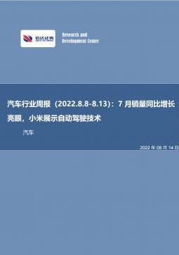 [智能驾驶]2022-08-14-信达证券-汽车行业周报:7月销量同比增长亮眼,小米展示自动驾驶技术-32页(银创产业通www.chanyetong.net)(银创产业通www.chanyetong.net)