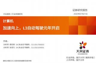 [智能驾驶]2022-07-21-天风证券-计算机行业深度研究:加速向上,L3自动驾驶元年开启-60页(银创产业通www.chanyetong.net)(银创产业通www.chanyetong.net)