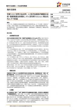 [智能驾驶]2022-07-29-天风证券-海外互联网行业研究简报:百度2022世界大会点评:AI技术加速迭代赋能云业务+智能驾驶业务增长,RT6发布将Robotaxi商业化代入下个阶段-3页(银创产业通www.chanyetong.net)(银创产业通www.chanyetong.net)