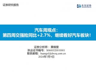 [汽车零部件]2024-07-09-东吴证券-汽车周观点:第四周交强险同比+2.7%,继续看好汽车板块!-28页(银创产业通www.chanyetong.net)