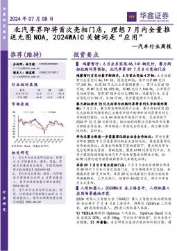 [汽车零部件]2024-07-08-华鑫证券-汽车行业周报:北汽享界即将首次亮相门店,理想7月内全量推送无图NOA,2024WAIC关键词是“应用”-15页(银创产业通www.chanyetong.net)(银创产业通www.chanyetong.net)