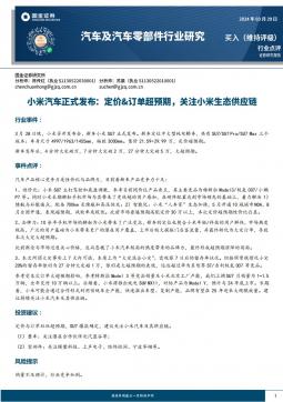 [汽车零部件]2024-03-29-国金证券-汽车及汽车零部件行业研究:小米汽车正式发布:定价&订单超预期,关注小米生态供应链-3页(银创产业通www.chanyetong.net)