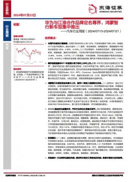 [汽车零部件]2024-07-22-东海证券-汽车行业周报:华为与江淮合作品牌定名尊界,鸿蒙智行新车型集中推出-11页(银创产业通www.chanyetong.net)(银创产业通www.chanyetong.net)