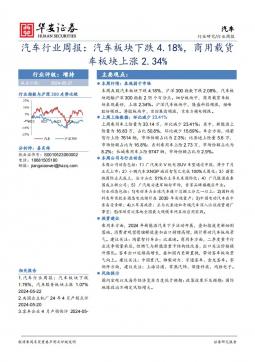 [汽车零部件]2024-05-27-华安证券-汽车行业周报:汽车板块下跌4.18%,商用载货车板块上涨2.34%-12页(银创产业通www.chanyetong.net)