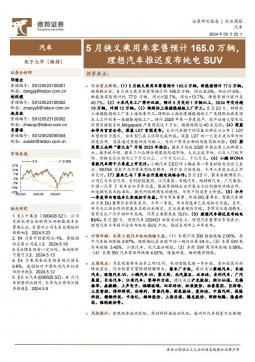 [汽车零部件]2024-05-26-德邦证券-汽车行业周报:5月狭义乘用车零售预计165.0万辆,理想汽车推迟发布纯电SUV-11页(银创产业通www.chanyetong.net)(银创产业通www.chanyetong.net)