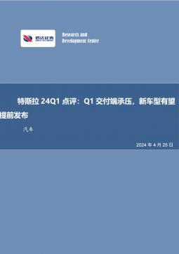 [汽车整车]2024-04-24-平安证券-汽车行业点评:特斯拉一季度业绩下滑,新车型加速推出-3页(银创产业通www.chanyetong.net)(银创产业通www.chanyetong.net)