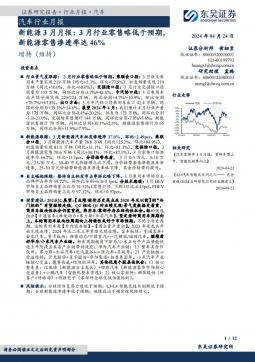 [汽车整车]2024-04-24-东吴证券-新能源3月月报:3月行业零售略低于预期,新能源零售渗透率达46%-12页(银创产业通www.chanyetong.net)