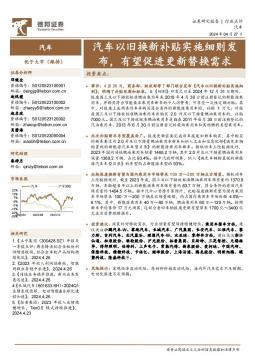 [汽车整车]2024-04-28-德邦证券-汽车行业点评:汽车以旧换新补贴实施细则发布,有望促进更新替换需求-2页(银创产业通www.chanyetong.net)(银创产业通www.chanyetong.net)