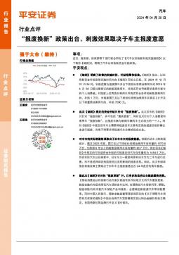 [汽车整车]2024-04-28-平安证券-汽车行业点评:“报废换新”政策出台,刺激效果取决于车主报废意愿-3页(银创产业通www.chanyetong.net)(银创产业通www.chanyetong.net)
