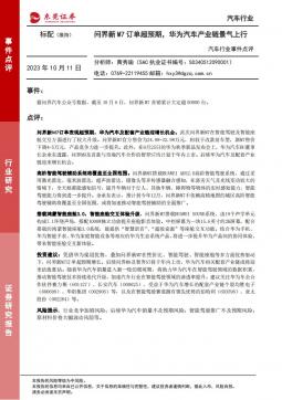 [汽车整车]2023-10-11-东莞证券-汽车行业事件点评:问界新M7订单超预期,华为汽车产业链景气上行-2页(银创产业通www.chanyetong.net)(银创产业通www.chanyetong.net)