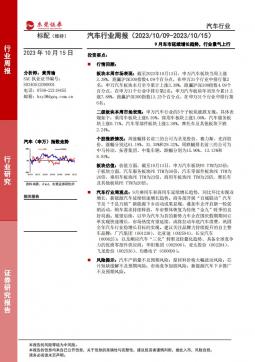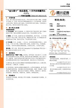 [汽车整车]2023-10-19-甬兴证券-汽车行业周报:“金九银十”效应显现,9月汽车销量同比+9.5%-12页(银创产业通www.chanyetong.net)