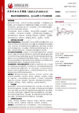[汽车零部件]2023-04-03-国联证券-汽车行业4月周报:燃油车销量持续承压,自主品牌22年业绩亮眼-19页(银创产业通www.chanyetong.net)(银创产业通www.chanyetong.net)