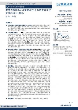 [汽车零部件]2023-04-03-东吴证券-汽车行业点评报告:新势力跟踪之3月销量点评:9家新势力合计交付环比+11.88%-9页(银创产业通www.chanyetong.net)