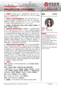 [汽车零部件]2024-08-18-民生证券-汽车和汽车零部件行业周报:乘用车淡季不淡 政策+半年报催化板块-33页(银创产业通www.chanyetong.net)