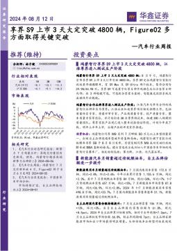 [汽车零部件]2024-08-12-华鑫证券-汽车行业周报:享界S9上市3天大定突破4800辆,Figure02多方面取得关键突破-15页(银创产业通www.chanyetong.net)(银创产业通www.chanyetong.net)