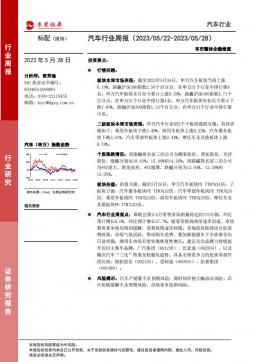 [汽车整车]2023-05-22-东吴证券-汽车行业跟踪周报:5月第二周乘用车批发销量环比+33%,优选客车!-16页(银创产业通www.chanyetong.net)