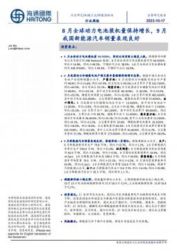 [新能源汽车]2023-10-18-海通国际-新能源板块行业周报:8月全球动力电池装机量保持增长,9月我国新能源汽车销量表现良好-9页(银创产业通www.chanyetong.net)(银创产业通www.chanyetong.net)