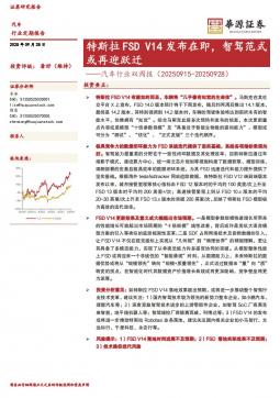 [汽车零部件]2025-09-28-华源证券-汽车行业双周报:特斯拉FSD V14发布在即,智驾范式或再迎跃迁-12页(银创产业通www.chanyetong.net)