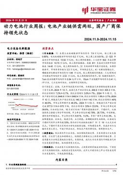 [电池]2024-11-21-华宝证券-动力电池行业周报:电池产业链供需两旺,国产厂商保持领先状态-16页(银创产业通www.chanyetong.net)(银创产业通www.chanyetong.net)