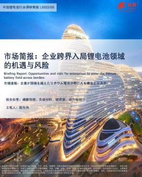 [锂电]2022-06-10-头豹研究院-中国锂电池行业调研市场简报:企业跨界入局锂电池领域的机遇与风险-13页(银创产业通www.chanyetong.net)(银创产业通www.chanyetong.net)