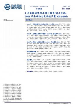[电池]2024-02-28-海通国际-新能源板块行业周报:2月新能源乘用车预计零售38.0万辆,2023年全球动力电池使用量705.5GWh-9页(银创产业通www.chanyetong.net)(银创产业通www.chanyetong.net)
