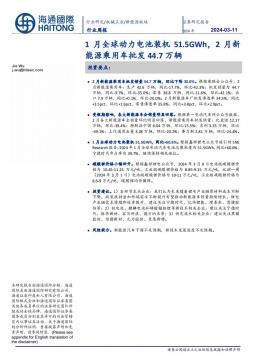 [电池]2024-03-12-海通国际-新能源板块行业周报:1月全球动力电池装机51.5GWh,2月新能源乘用车批发44.7万辆-9页(银创产业通www.chanyetong.net)(银创产业通www.chanyetong.net)